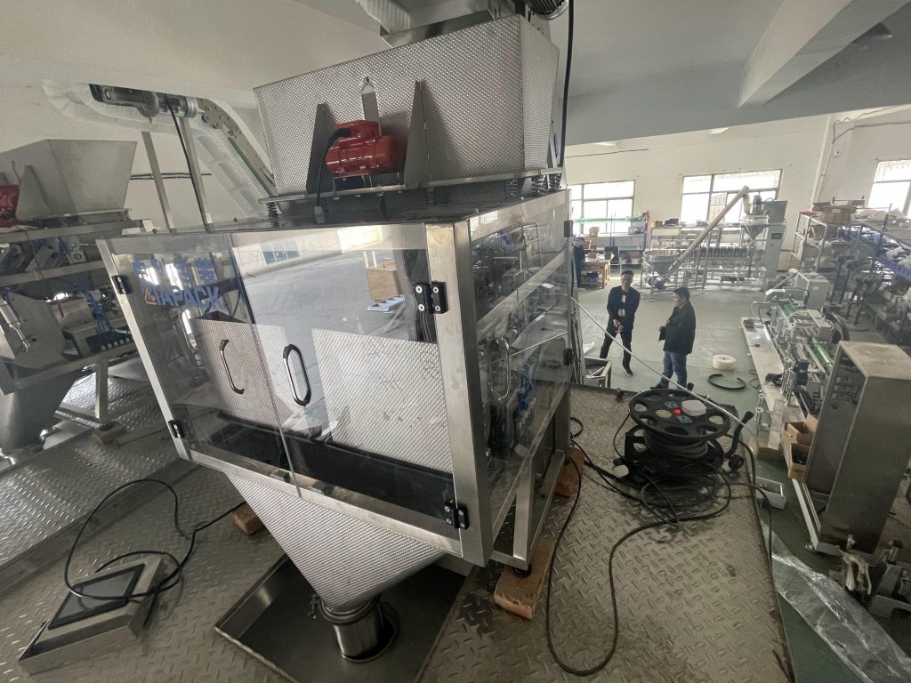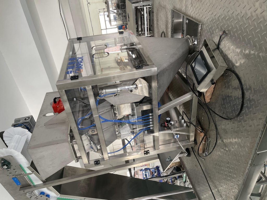 Ця одиниця має спеціальну конструкцію для пакування кубиків льоду та трубок для льоду в м’який поліетиленовий пакет. З функцією подачі кубиків льоду, зважування, наповнення, автоматичного формування мішка та виведення повного мішка. Основна машина має функцію підрахунку мішків та кодування дати. .
