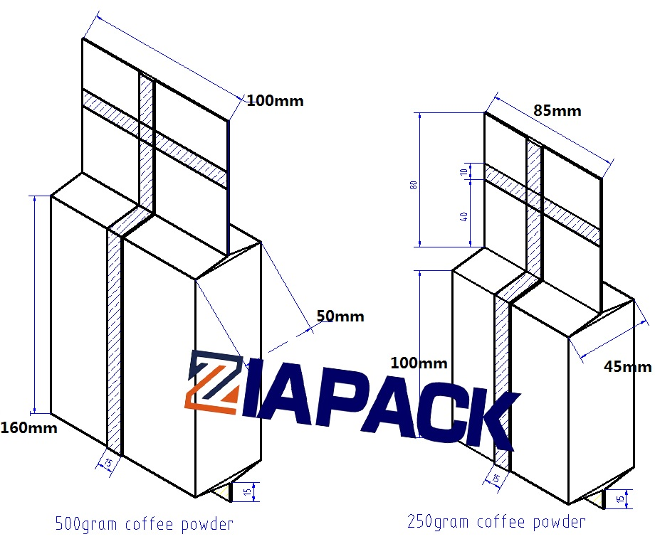 Ця машина включає в себе один набір ZL520 вертикальної машини для пакування та запаювання пакетів. Один набір ZL2000 Auger вимірювальної машини, один набір ZL100V2 подвійної вакуумної камери пакувальної машини та один набір вихідного конвеєра. Машина має функцію формування мішка, наповнення продукту, очищення мішка. і вакуумування. Можна вибрати термотрансферну кодувальну машину, яка є більш популярною для кодування дати на вакуумному пакеті з кавової цегли. Ця машина широко використовується для пакування харчових аптечних хімікатів та інших продуктів у вигляді порошку або дрібних гранул. Як порошок кави, порошок дріжджів, пшеничне борошно тощо. Вся машина приймає всередині насос для вакуумування продукту. Ступінь вакууму дуже високий, а швидкість пакування дуже висока, може досягати 8 пакетів/хв. Готовий продукт дуже гарний і має тривалий термін зберігання.