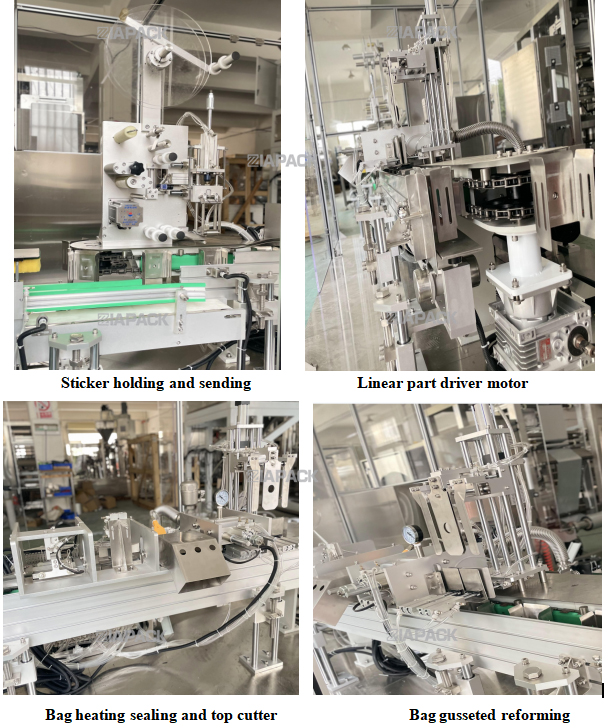 Ця машина має спеціальну конструкцію для виготовлення мішка з ластовицею з верхнім маркуванням. Після того, як повний мішок із продуктом впаде на цю машину. Ця машина буде носити мішок, проходити через одноразове складання рота мішка, а потім наклеювати етикетку. Рама машини, виготовлена компанією SUS304. ПЛК і сенсорний екран прийняті брендом Siemens. А пневматичні частини використовують бренд SMC. Основні електричні компоненти використовують бренди Omron і Schneider. Ця машина працює з автоматичною пакувальною машиною для досягнення маркування верхньої частини готової сумки. Ця машина може автоматично досягати функції відокремлення етикетки, надсилання етикетки. Детектор етикетки та натискання етикетки.