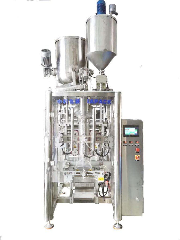 Цей агрегат розроблений для потреб рідких і в'язких продуктів. Пристрій складається з машини для цементації та пакувальної машини; пакувальна машина має просту конструкцію і зручна в експлуатації; машина поєднує в собі функції виготовлення мішків, наповнення, герметизації та підрахунку. Він використовує сервомотор для витягування плівки та має функцію автоматичної корекції відхилення.