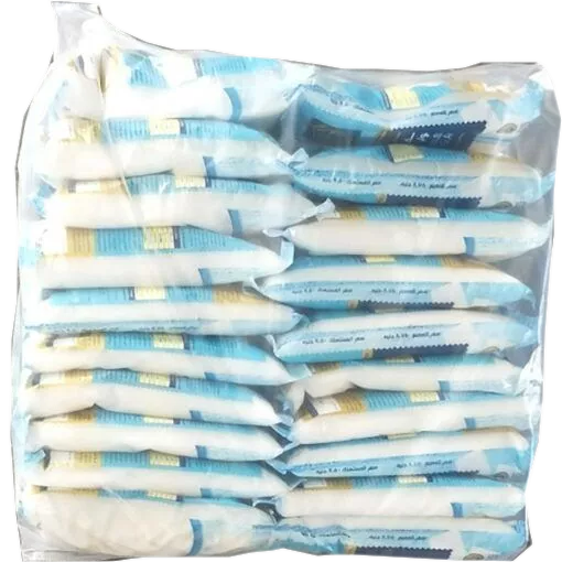 Ця лінія є спеціальною конструкцією для цукрової рисової солі та пшеничного борошна та заводу з виробництва зерна. Вся лінія може автоматично зважувати невелику вагу рисового цукру, солі, пшеничного борошна або сухого молока, формувати мішок, наповнюючи продукт і запечатуючи мішок, а потім транспортуючи пакети до прес-підбирача для пресування у великий поліетиленовий мішок.