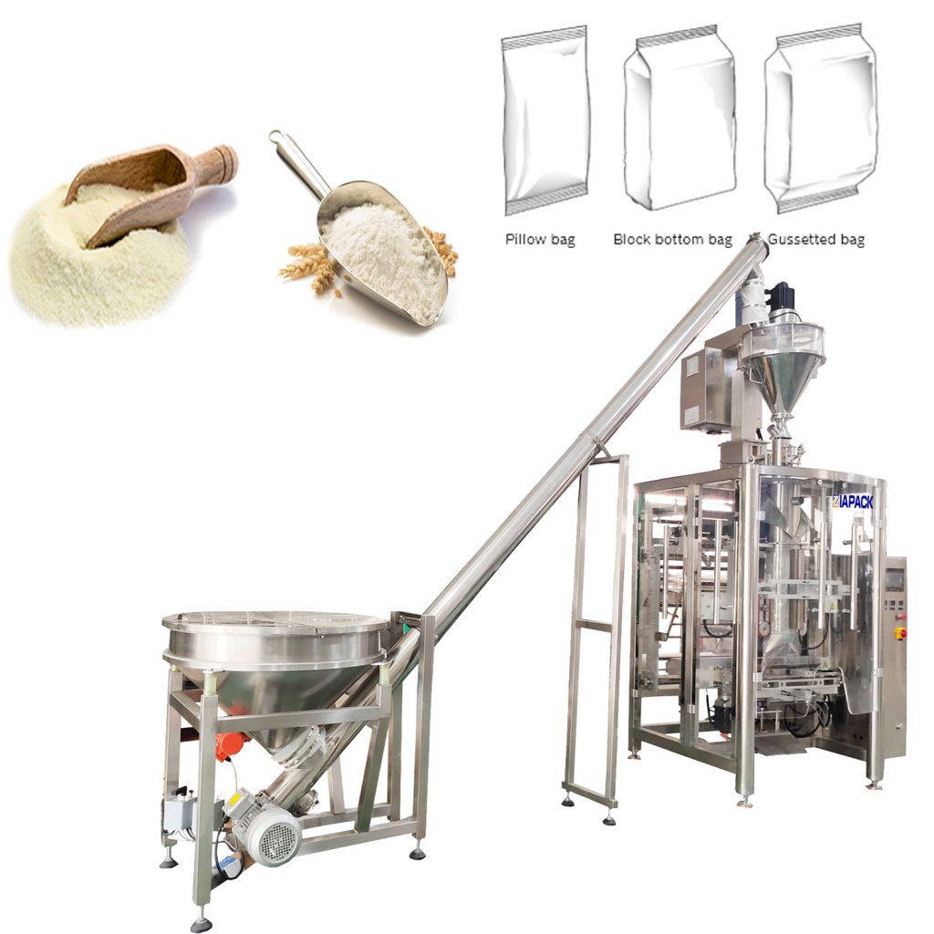 Ця машинна одиниця включає в себе один набір ZL1100 вертикальної машини для наповнення мішків і один набір шнекової вимірювальної машини ZL2000. Весь блок машини може досягати автоматичного виготовлення мішків, зважування продукту, запаювання продукту та кодування дати. Широко використовується для пакування пшеничного борошна, кави порошок і сухе молоко та інші порошкоподібні продукти.