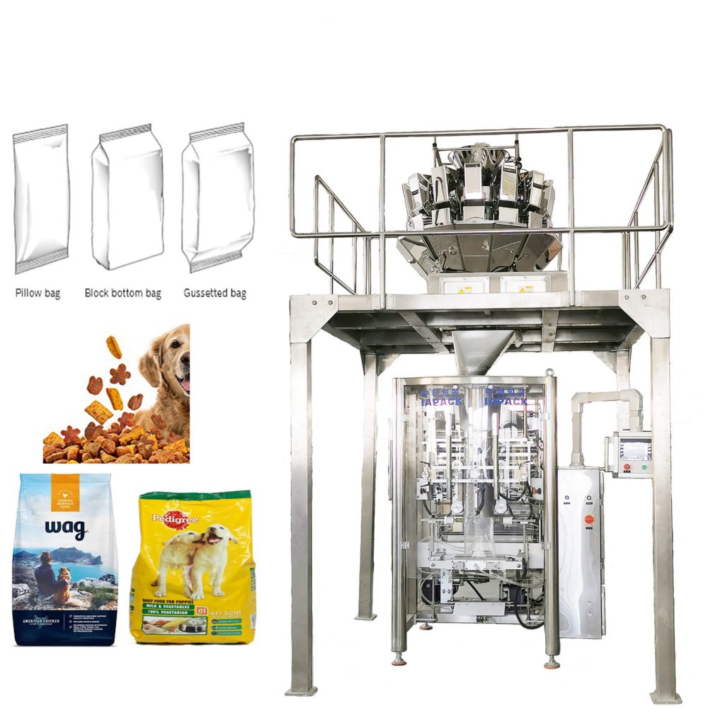Цей агрегат складається з однієї автоматичної вертикальної пакувальної машини VFFS520, однієї вагової машини ZR14-1,6L з багатьма головками, одного ковшового елеватора DT5. Він може автоматично виконувати функції подачі матеріалу, зважування, виготовлення мішків, наповнення, пакування, друку, різання тощо.