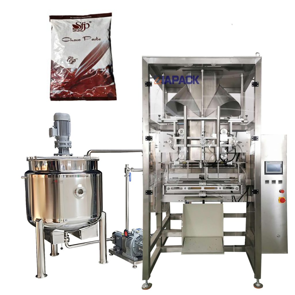 Ця машинна одиниця є спеціальною конструкцією для пакування невеликих продуктів із соусом, таких як кетч-ап, соус чилі, рибне борошно тощо. Машина може автоматично робити мішок, зважувати продукт, заповнювати продукт у мішок, а потім виводити на конвеєр. Вся машина керуються ПЛК і можуть працювати на сенсорному екрані. Легко регулювати та обслуговувати.