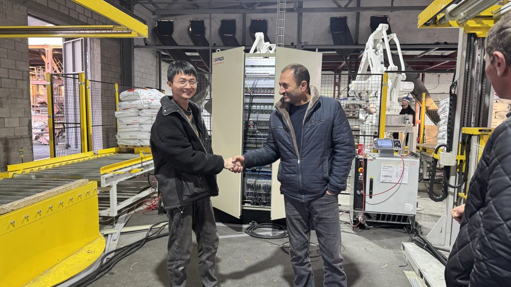 10 квітня 2025 року на заводі замовника почали працювати два комплекти виробничих ліній для зважування та пакування кормів для домашніх тварин по 25 кг, наданих компанією Anhui Iapack Machinery Co.,ltd. Дві виробничі лінії включають повністю автоматичне зважування та розвантаження продукції, автоматичне завантаження та відкриття мішків, автоматичну подачу та герметизацію мішків, автоматичне кодування та визначення ваги, автоматичне палетування та транспортування піддонів, а також автоматичне намотування та пакетування. Замовник дуже задоволений роботою цього двох виробничого обладнання.