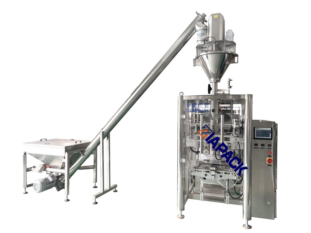Ця машинна одиниця включає в себе один набір ZL520 вертикальної машини для наповнення мішків і один набір шнекової вимірювальної машини ZL2000. Весь блок машини може досягати автоматичного виготовлення мішків, зважування продукту, запаювання продукту та кодування дати. Широко використовується для пакування пшеничного борошна, кави порошок та інший порошковий продукт.